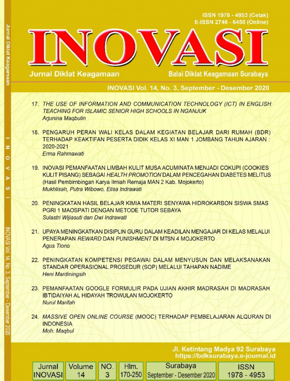 Inovasi-Jurnal Diklat Keagamaan (p-ISSN 1978-4953, e-ISSN 2746-6450, DOI Prefix: 10.52048) is a regular journal published by the Surabaya Religious Education and Training Center, under the Ministry of Religion. , Republic of Indonesia. The journal aims to disseminate knowledge in the sphere of education and religion.
